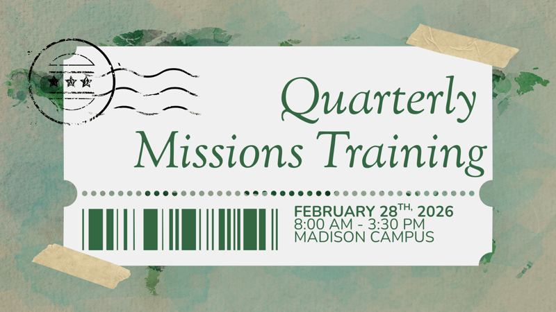 We’re excited to announce the new date for our Quarterly Missions Training! Join us for Missions Training with Pastor Rick Thornhill on February 28th, from 8:00 AM–3:00 PM, at the Madison Location.