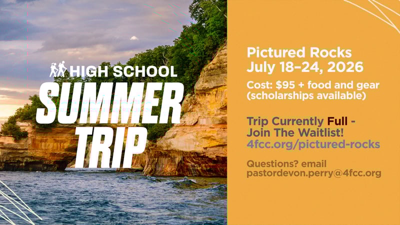 Our High School students (incoming 9th–outgoing 12th graders) have an amazing opportunity to go backpacking through the beautiful Pictured Rocks! This trip is designed to help students unplug from distractions and connect with God through His creation.