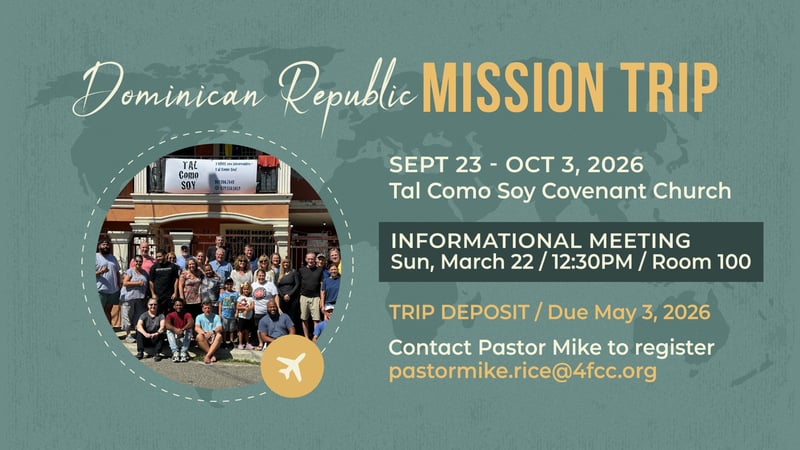 Our Dental Clinic and Construction Project mission trip will take place September 23–October 3, 2026. If you’re interested in being part of what God is doing through this important outreach, we invite you to attend an informational meeting on March 22, 2026 at 12:30pm in Room 100.