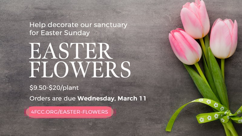Easter flowers serve as a beautiful reminder of Christ’s resurrection and the beginning of new life. This year, you can purchase flowers to be "planted" in our sanctuary to celebrate the Easter holiday.