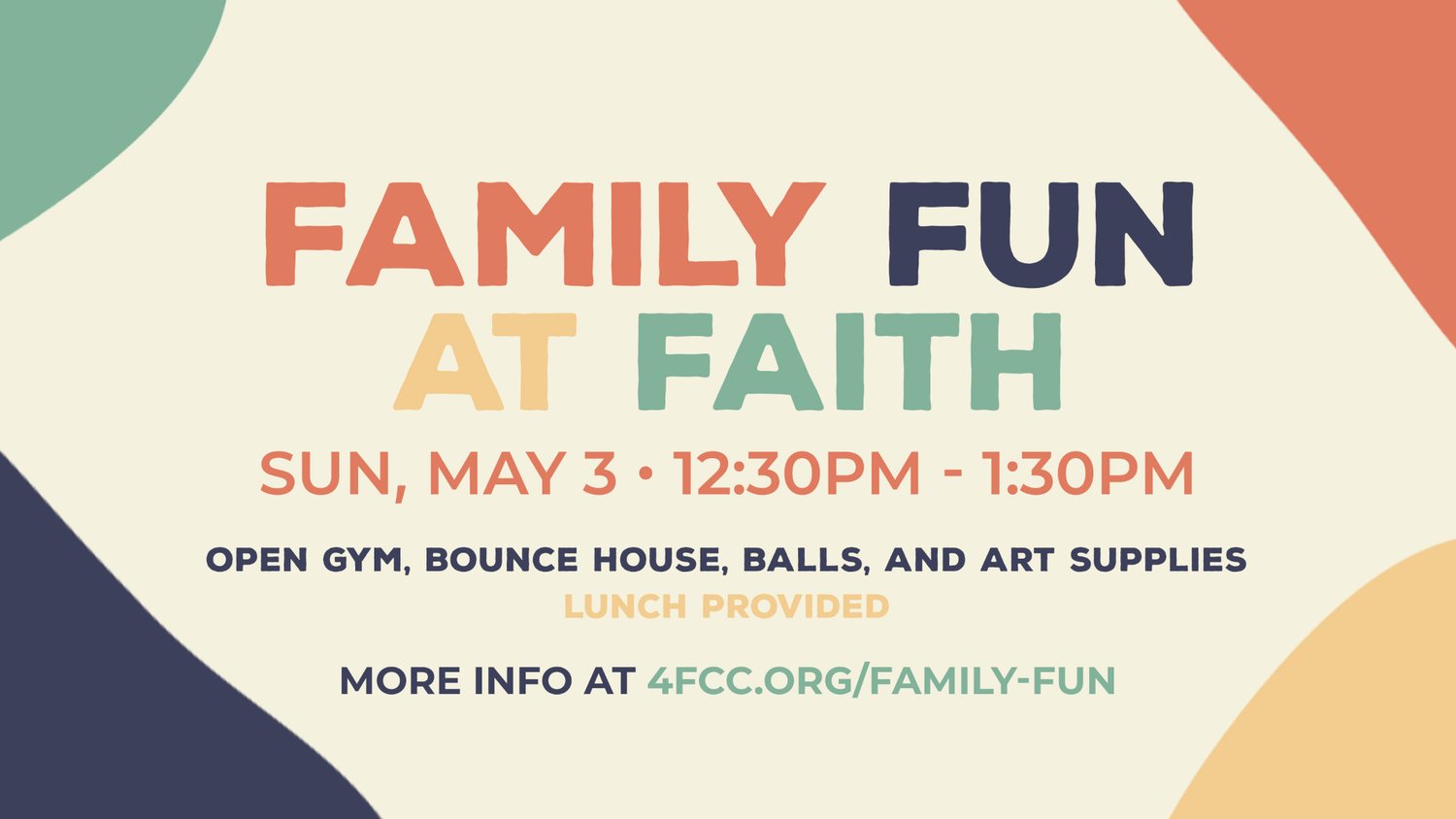 Sunday, May 3rd at 12:30 pm, we will be hosting a lunch for anyone new or newish. This is a great opportunity to learn more, meet new people, and connect with some of our staff members. If interested in coming, please let Pastor James know (pastorjames.bryde@4fcc.org).