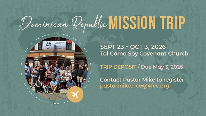 Trip deposits are due May 3, 2026. Please make your $200 payment out to Faith Covenant Church and designate it for the DR Mission Trip.